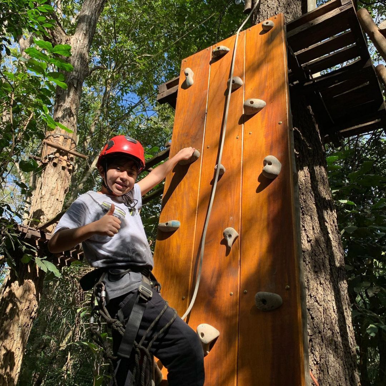 Percurso completo de 300 metros de extensão com altura variando de 4 à 15 metros do solo. Ao todo são 18 estações diferentes, além de duas tirolesas, sendo a última uma tirolesa aquática no Rio Formoso. Antes do início do passeio haverá um breve treinamento para familiarizar o cliente com os equipamentos e com o percurso.