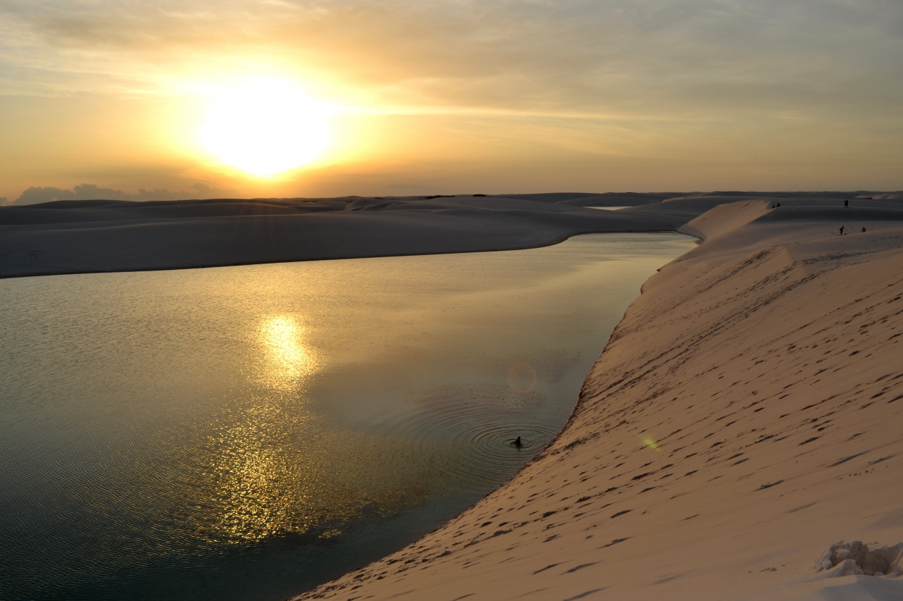 Às 14h00, saída em veículo 4x4 onde faremos a travessia de balsa em seguida pegaremos uma trilha até chegarmos aos pés das Dunas, onde subiremos por um morro íngreme de aproximadamente 30 metros com o auxílio de uma corda. Ao chegarmos ao topo, teremos uma linda visão do parque, iniciaremos uma caminhada dentro do circuito Lagoa Bonita, onde poderemos observar diversas lagoas (no período de chuva), e desfrutar de um delicioso banho e se maravilhar com o espetáculo do pôr do sol. Retorno para Barreirinhas por volta das 19h.