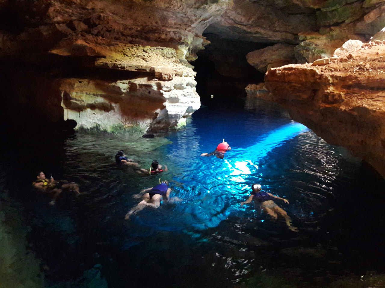 Nesse roteiro mágico você visitará primeiro o Poço Encantado. Sua beleza por vezes indescritível gera uma sensação de deslumbramento imediata. Os que visitam geralmente dizem que o nome faz jus à sensação de encantamento que se tem nesse local. Estar ali, contemplando um verdadeiro milagre da natureza, é uma das atividades que mais atraem visitantes à Chapada Diamantina durante o ano todo. Certamente um lugar único no mundo! Acesso ao Poço Encantado a partir dos 12 anos de idade.