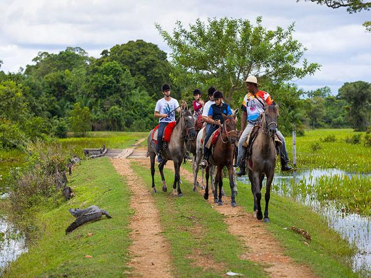 Desbrave o Pantanal montado no icônico Cavalo Pantaneiro, o mais resistente e adaptado às paisagens alagadas da região. Durante o passeio, você atravessará corixos e áreas inundadas, sentindo-se completamente conectado à natureza. 🌾🐾