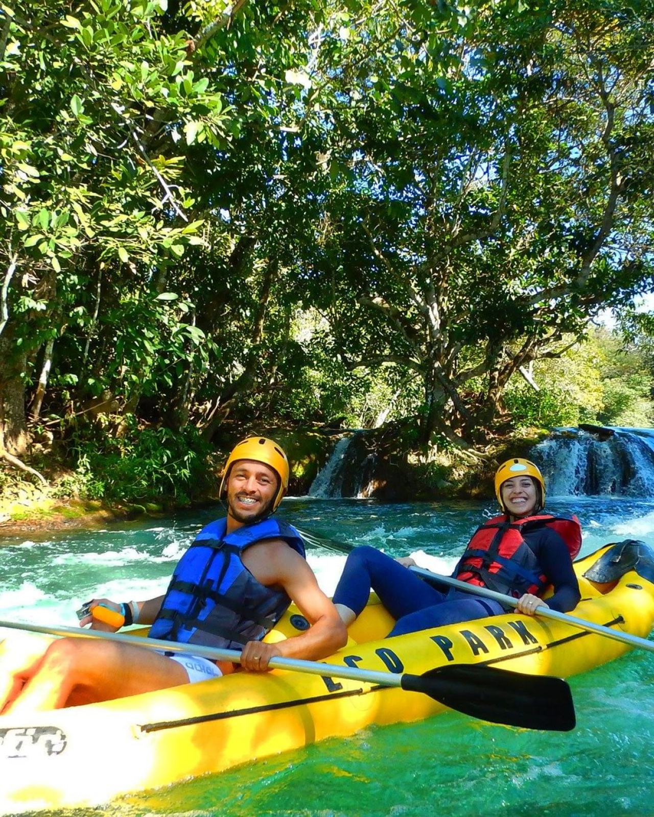 Muito divertido! Você dá muitas risadas pois cai na água algumas vezes, até que começa a pegar o jeito. E depois é que nem andar de bicicleta. Esse é o verdadeiro espírito da aventura. Depois é só remar de um lado para o outro e ir tirando várias fotos com o Rio Formoso de paisagem com cachoeiras ao fundo.